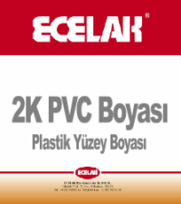 ECELAK 2K PVC BOYASI, Epoksi rezinlerle hazırlanmış yüksek adhezif özellikte, iki bileşenli, plastik yüzeyler için hazırlanmış sonkat bir boya-dır. Pistole ile Püskürtme, (alttan hazneli 1.8 mmm meme çaplı), fırça, yada rulo(postaki tip)ile uygulanır. PVC ve ben-zer plastik malzemelerin boyanmasında kullanılır.
